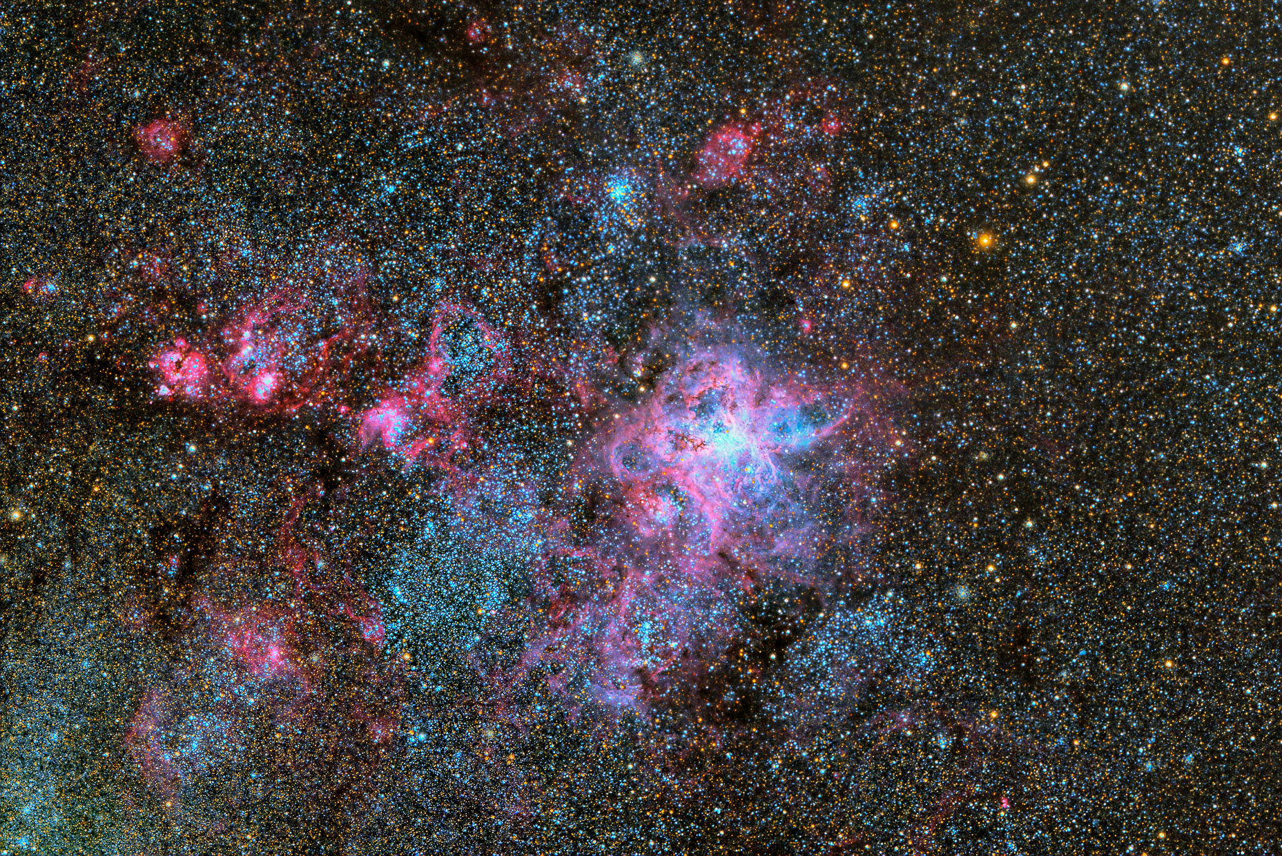 30 Doradus oder Tarantel Nebel, ist eine ausgedehnte H II Region in der großen Magellanschen Wolke GMC. Sie wurde von Nicolas-Lous de Lacaille während einer Expedition am Kap der guten Hoffnung zwischen 1751 und 1753 entdeckt.