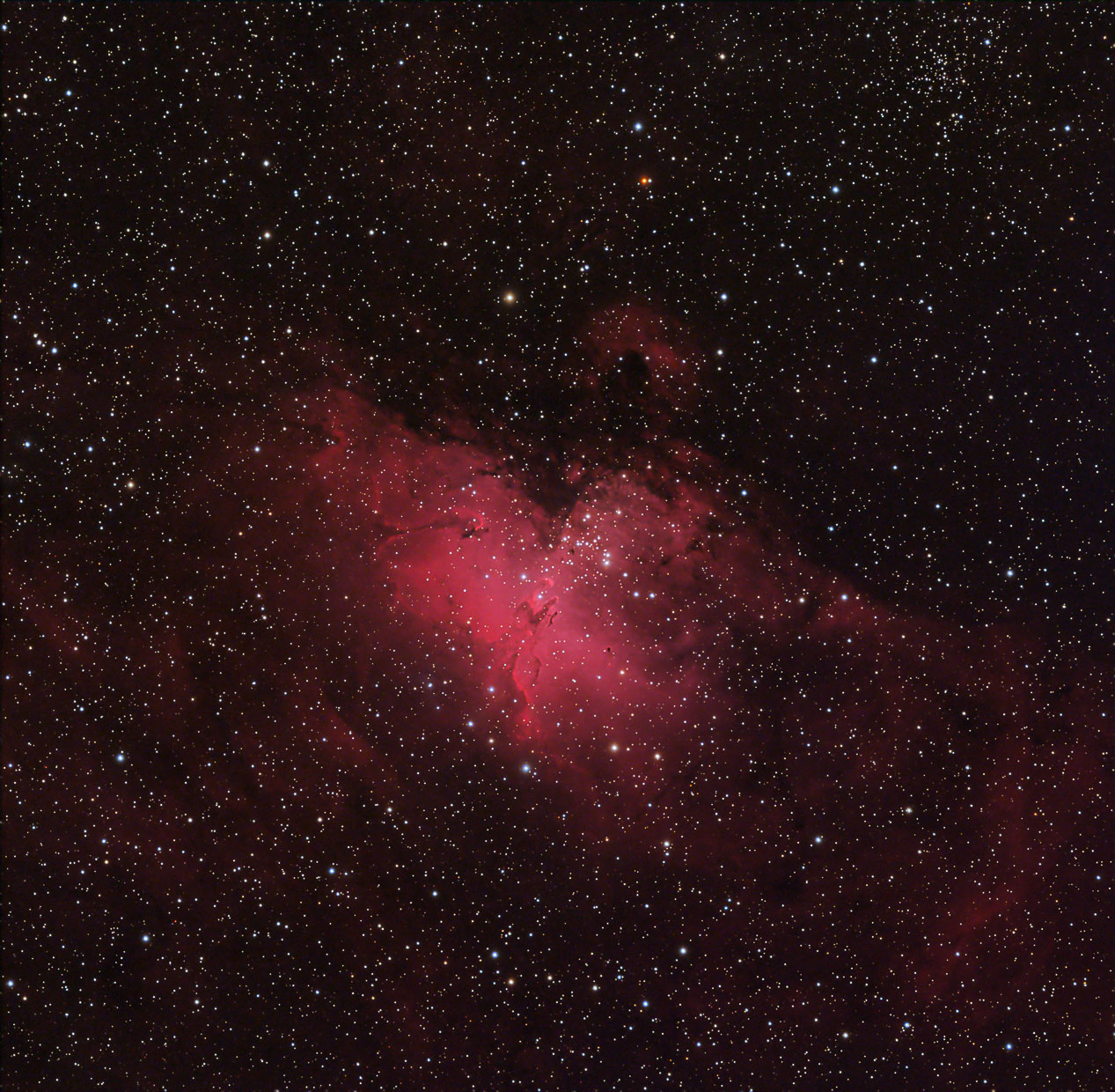 M 16, der Adler Nebel im Schwanz der Schlange (Serpens Cauda).. Ein offener Sternhaufen mit Emissionsnebel, M 16 wird meistens synonym für beide gebraucht, offiziell hat der Nebel die Bezeichnung IC 4703.