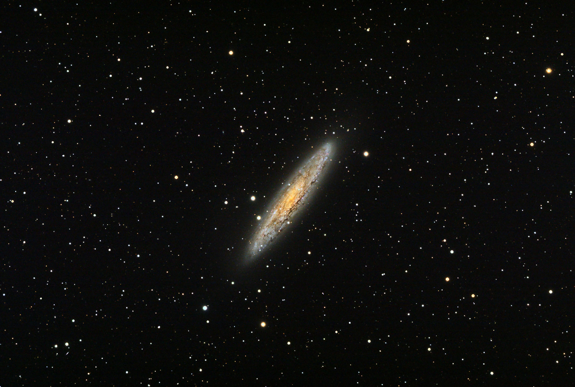 Die Sculptor Galaxy oder NGC 253, trägt auch die Bezeichnung "Silver Dollar Galaxy". Sie wurde ursprünglich von Caroline Herschel entdeckt und von John Herschel viele Jahre später mit seinem 18" Reflektor genauer untersucht.