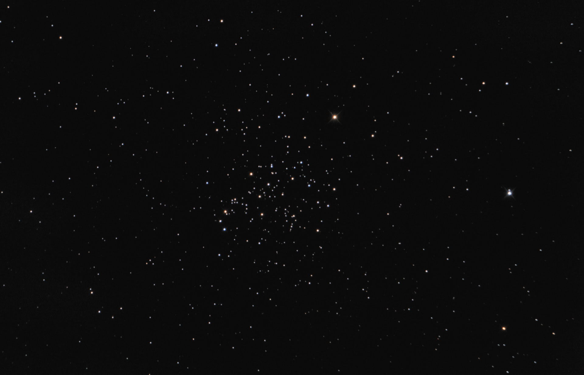 Der offene Sternhaufen M67 - im Sternbild Krebs ist mit seinem Alter von 4-5 Milliarden Jahren etwas so alt wie unsere Sonne, trotz dieses Alters enthält er noch blaue Nachzügler (Blue Stragglers). RC8, EOS 1000da, 9 x 3 min, ISO 800