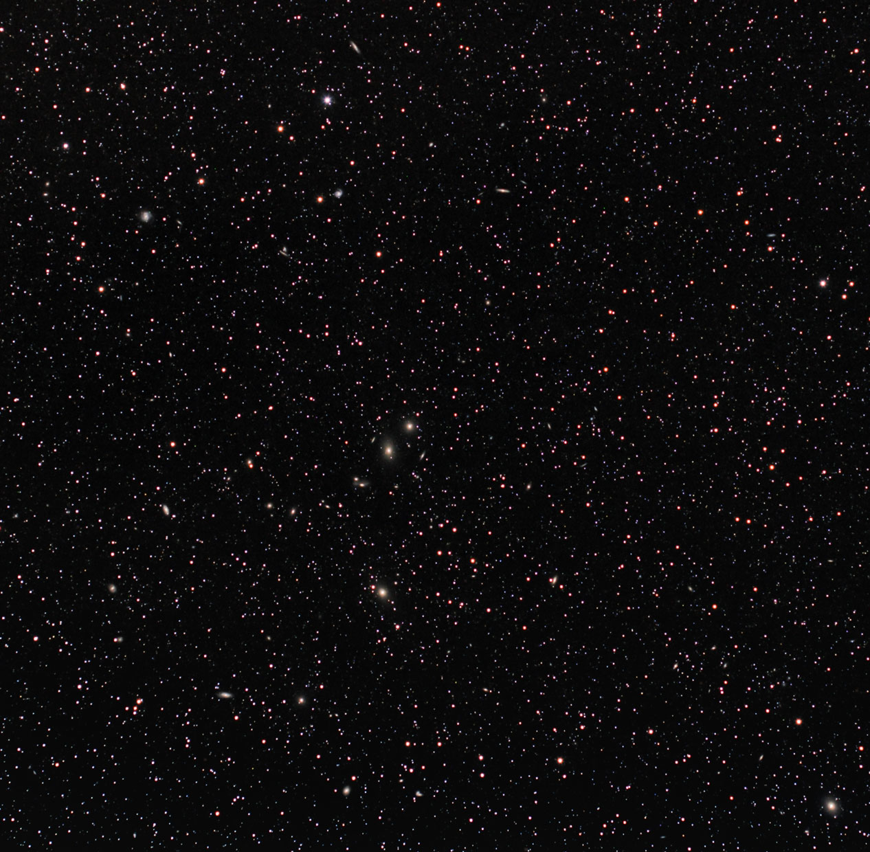 Virgo Cluster widefield - Der Galaxien-Cluster in der Jungfrau. Weitfeldaufnahme mit Canon 1000da und EF 2.8/100 auf 4.0 abgeblendet. (Ausschnitt)