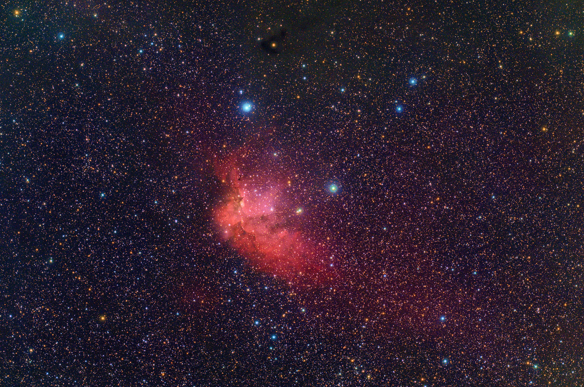 Sh2-142 oder NGC7380 aka "Wizard Nebula" ist ein offener Sternhaufen mit umgebendem Emissionsnebel im Sternbild Kepheus. Im Zentrum des OC liegt das spektroskopisch binäre Sternsystem DH Cephei, das die H II Region ionisiert.