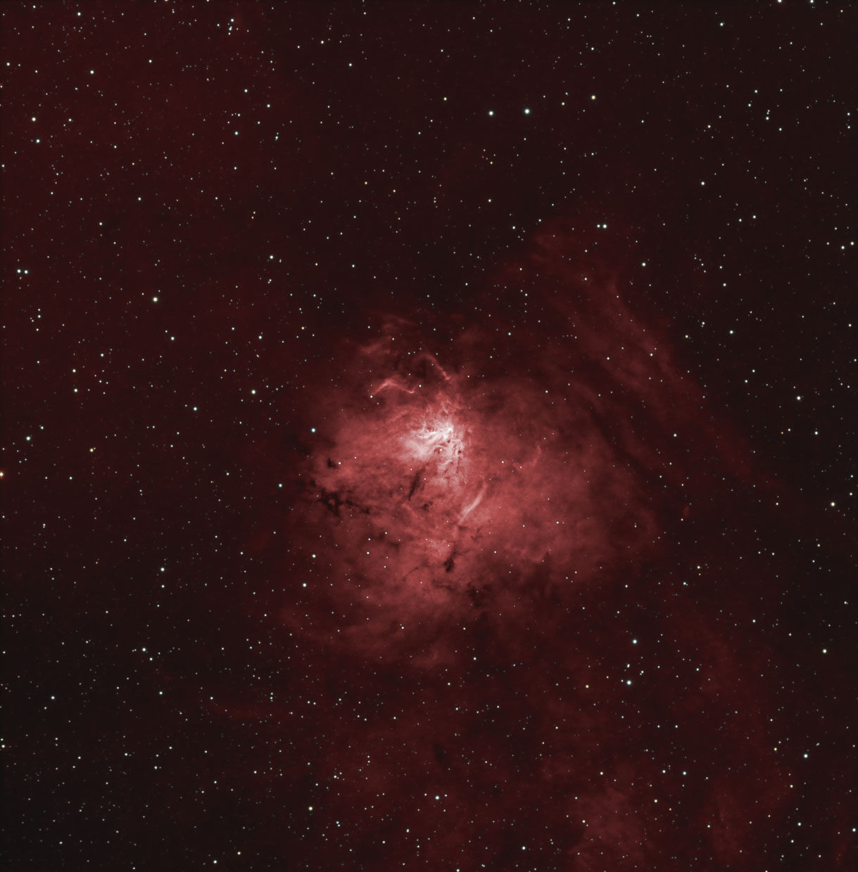 Sh2-54 ist ein ausgedehnter, heller Nebel im Sternbild Serpens. In seinem Kern enthält er mehrere Protosterne und infrarote Lichtquellen. HaRGB Kombination der Aufnahmen vom 9.8.22 in Ha mit der STF 8300 M und vom 10.10.23 und 13.10.23 mit der ASI 071 MC pro mit dem Veloce RH200.