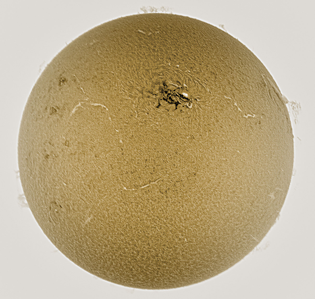 Die Sonnenfleckenregion AR 3590 am 25.2.24, man konnte sie mit einer Finsternisbrille mit bloßem Auge sehen. Bader CaK Gen. II Filter, ASI 178 MM