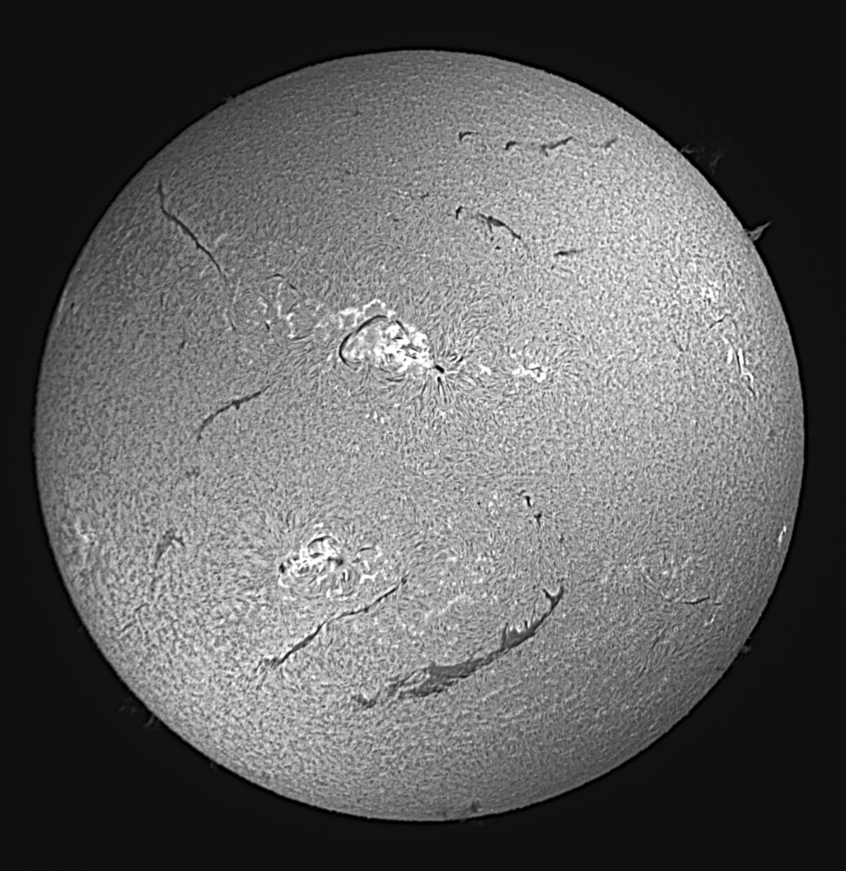Die Sonne in Ha am 26.6.22. Coronado Solarmax 70/400, 40 Aufnahmen aus 400, ASI 178 MM, bearbeitet in ImagesPlus und PS