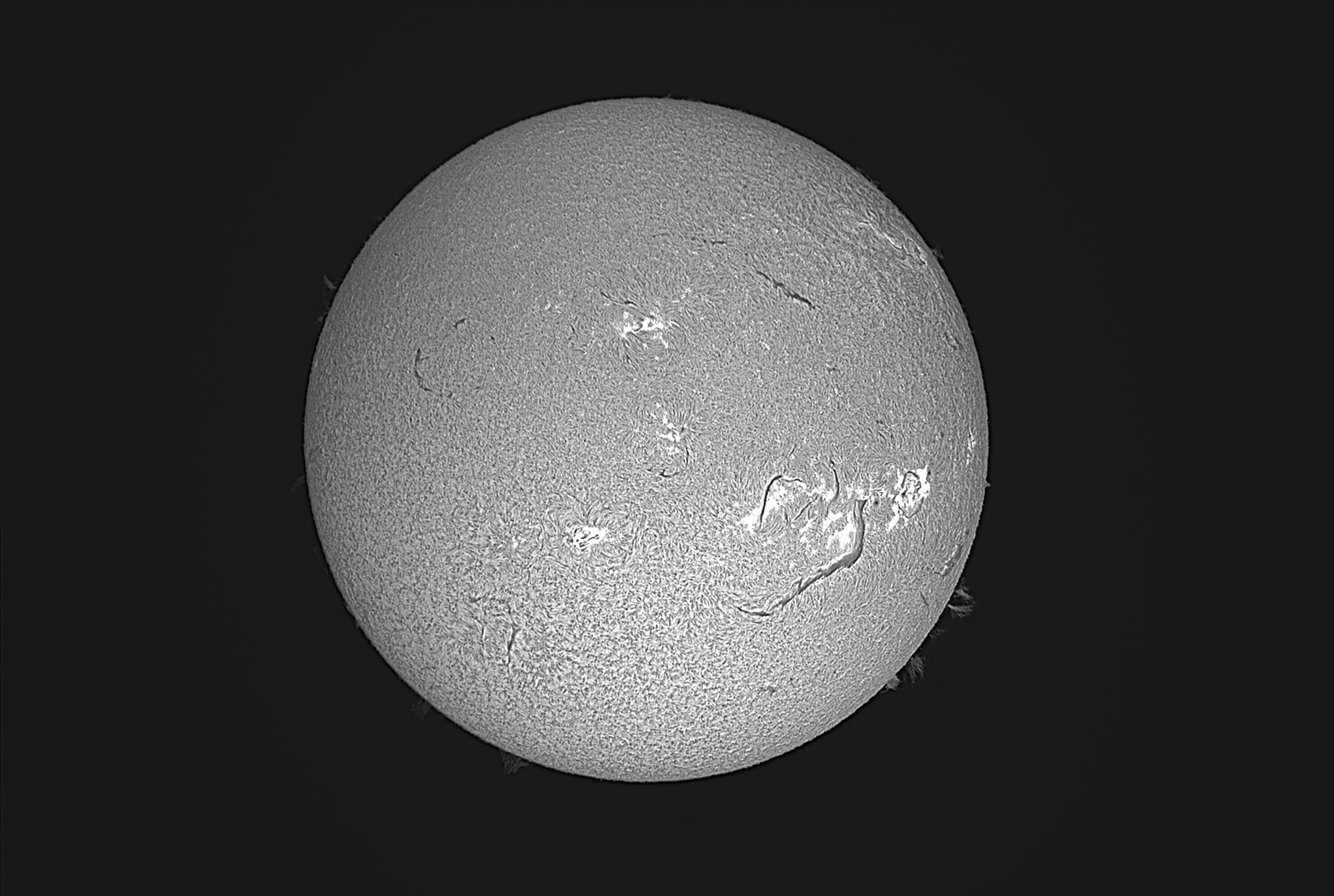 Die Chromosphäre der Sonne am 11.07.22, deutlich fallen die hellen Stellen auf, die den Sonnenflecken der vorgerhenden Aufnahme entsprechen.