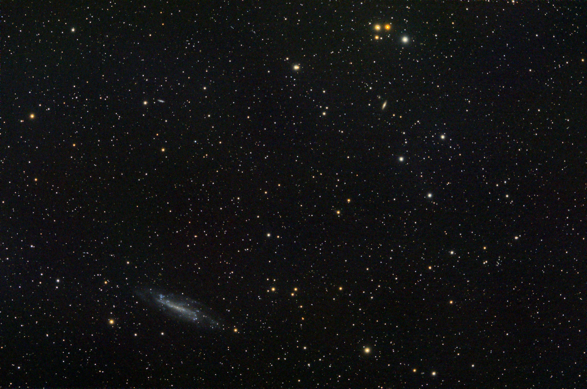 NGC 4236 eine Balkenspirale im Sternbild Draco (Drachen). Etwa 14,5 MLj von uns entfernt ist sie Teil der M81 Gruppe. Neuaufnahme, obwohl nur 1 Stunde Dunkelheit ließ sich doch eine passable Tiefe erziehlen. TMB 105/6.2, ASI 071 MC, 32 x 120s, bearbeitet in PI und LR. Hohe Schleierwolken