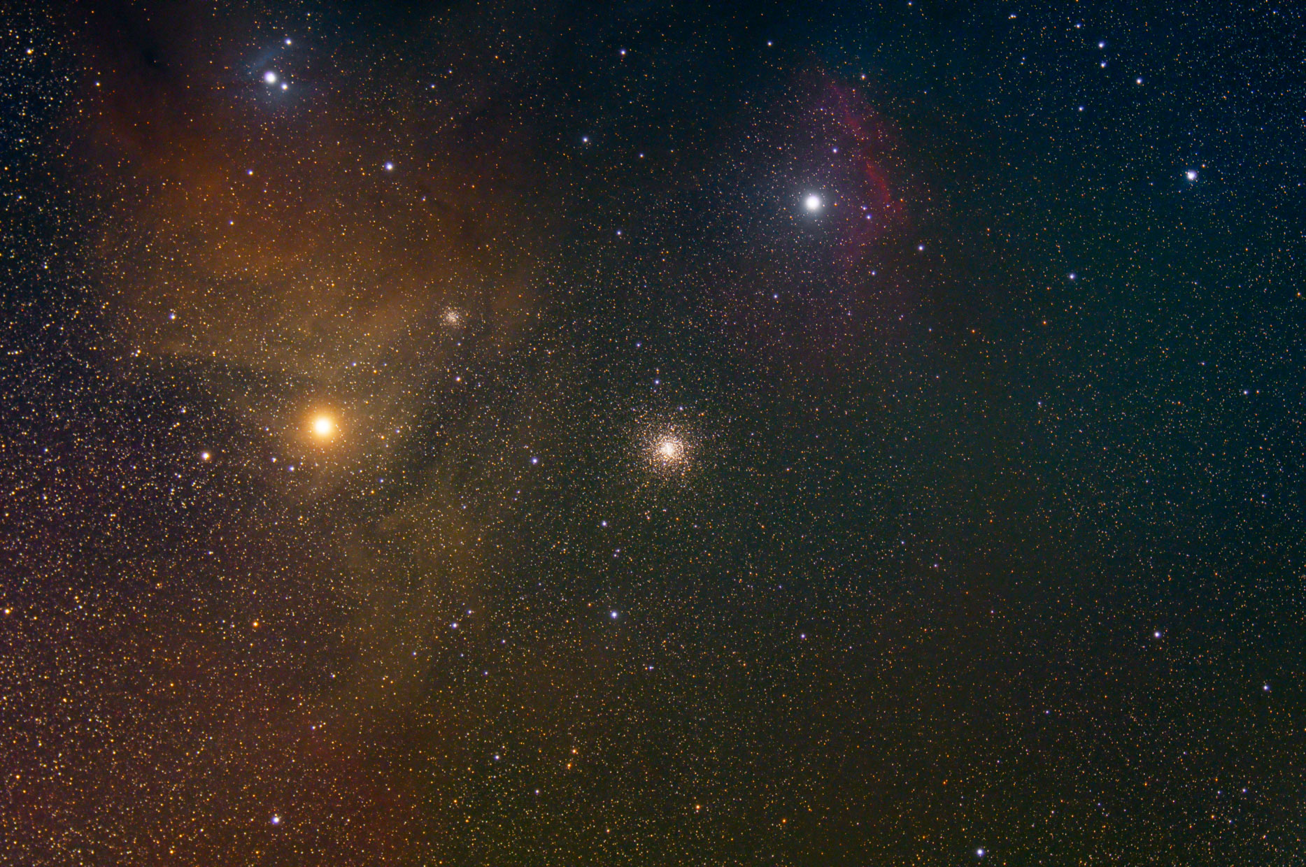 Die Region um Antares mit den südlichen Anteilen der Rho Ophiuchi Molekular Wolke. Neben Antares der Kugelsternhaufen M 4 EDPH 61/4.5, ASI 071 MC, 25 x 2 min., PI + LR