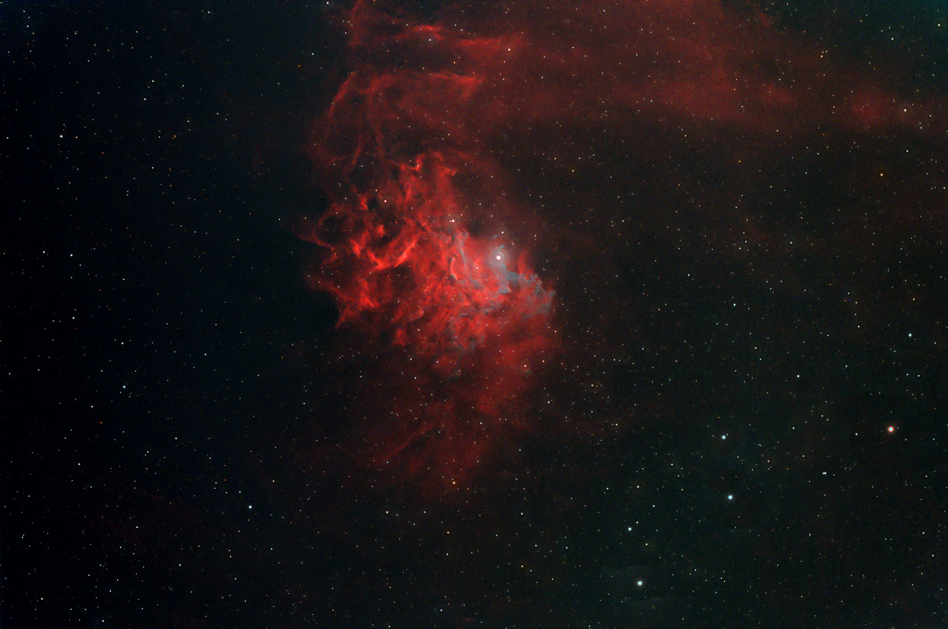 IC 405, Flaming Star Nebula, Emissions- und Reflexionsnebel in Auriga. Der helle Stern in Bildmitte, AE Auriga regt den Nebel zum Leuchten an.