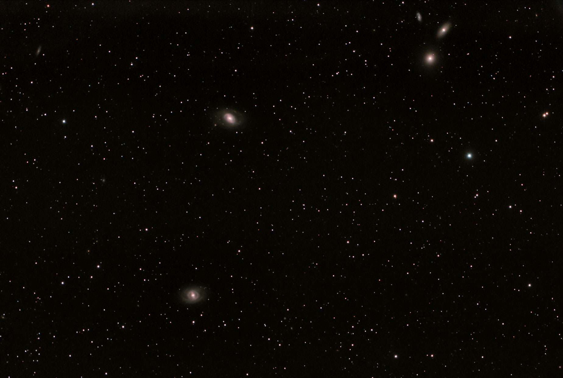 Virgo Cluster widefield - Der Galaxien-Cluster in der Jungfrau. Weitfeldaufnahme mit Canon 1000da und EF 2.8/100 auf 4.0 abgeblendet. (Ausschnitt)