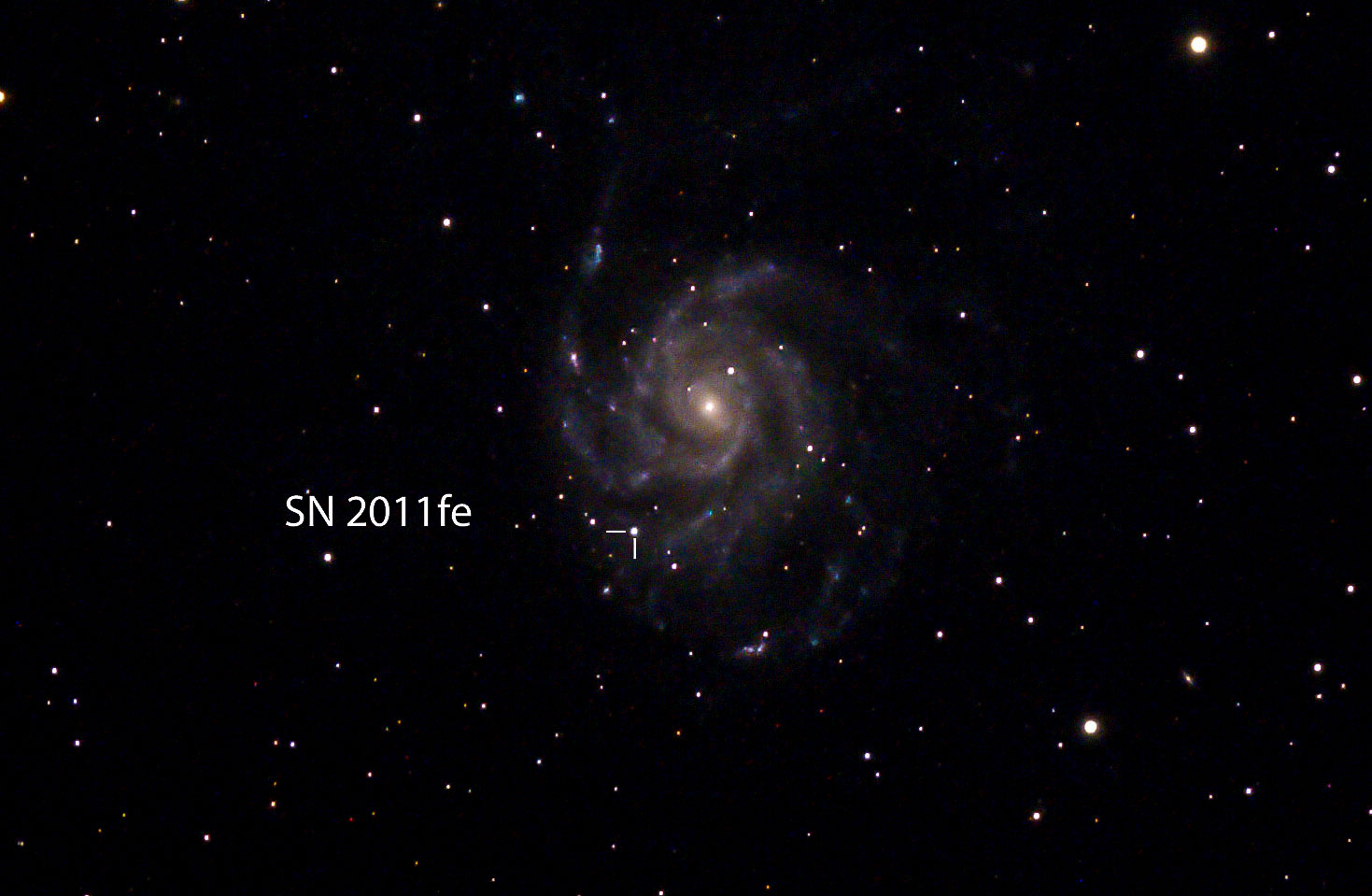 SN 2011fe in M101, TMB 105/6,2, 5 Aufnahmen a 240 sec. bei ISO 800, Canon 1000da