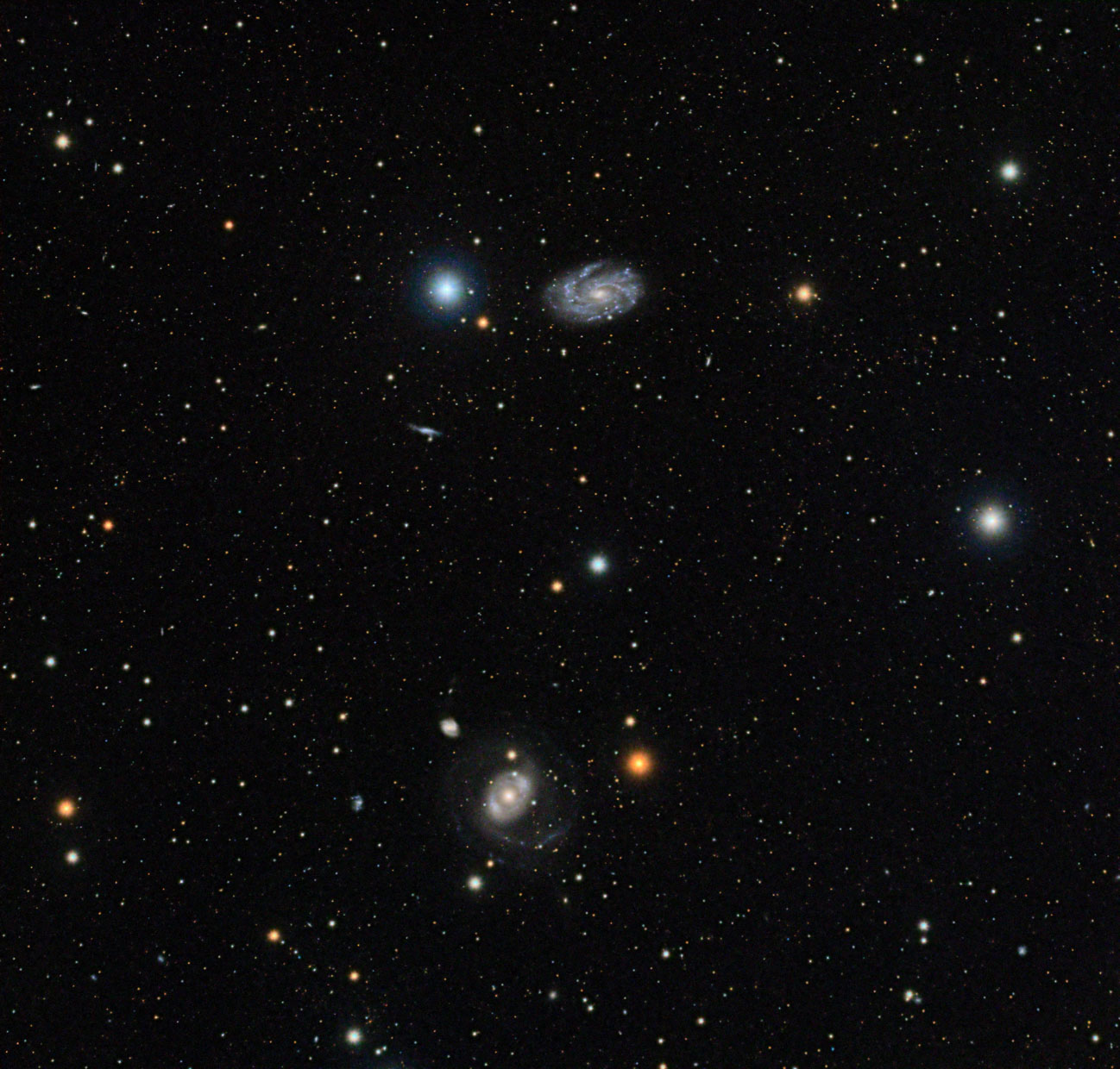 NGC 4151 (Saurons Auge) und NGC 4145 sind ein wunderschönes Galaxienpaar in Canes Venatici (Jagdhunde). In einer Entfernung von 62 Mio Lj. enthält NGC 4151 ein supermassives schwarzes Loch mit 37,6 Mio Sonnenmassen. LRGB Aufnahme mit der ASI 533MM, insges. 50 x 3 min., Veloce RH200, PI und LR Norden ist oben