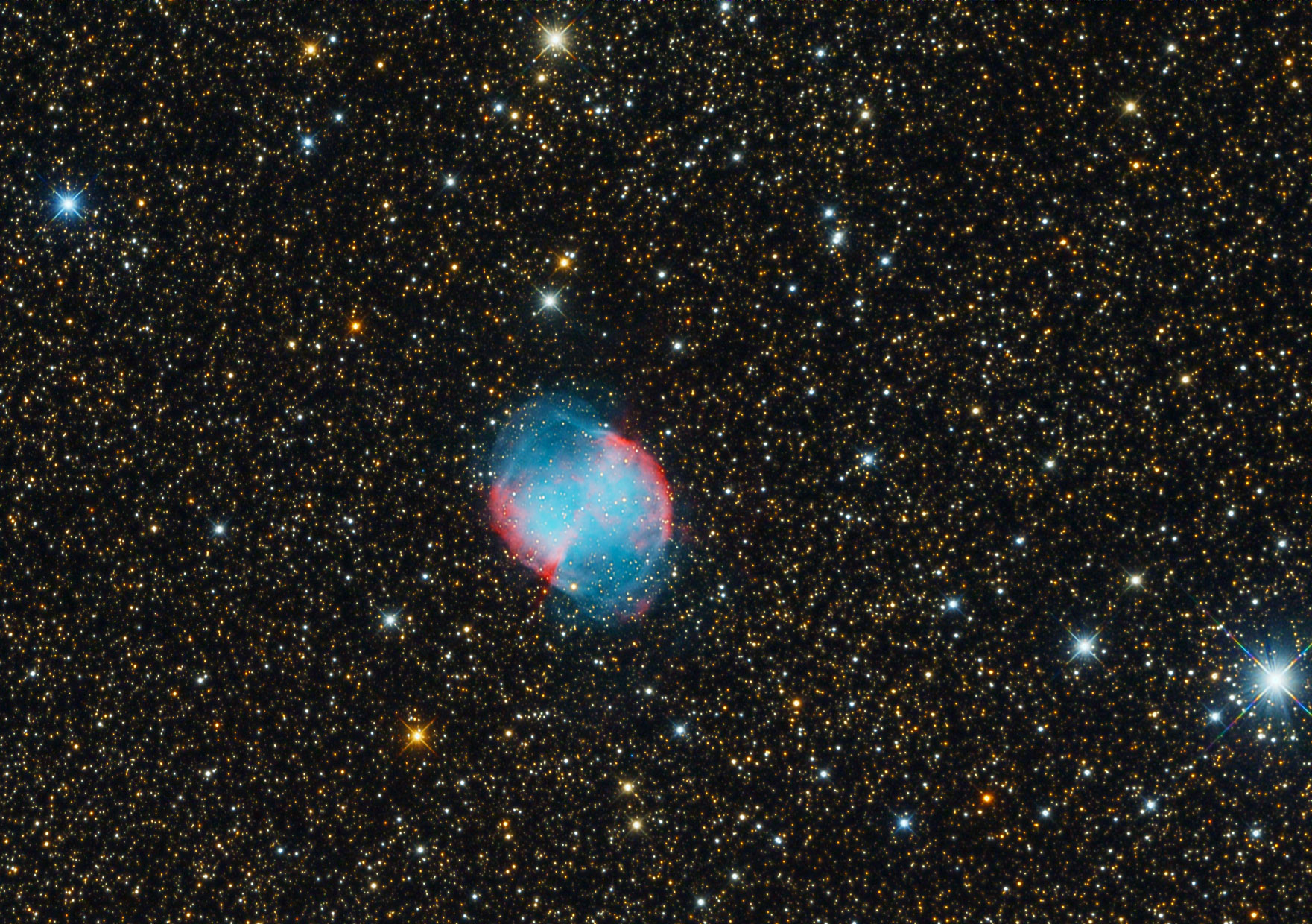 M27 mit der ASI 071, 30 x 240 sec, unitiy gain, RC8, Mondalter 6 Tage. PI, PS + LR CC.