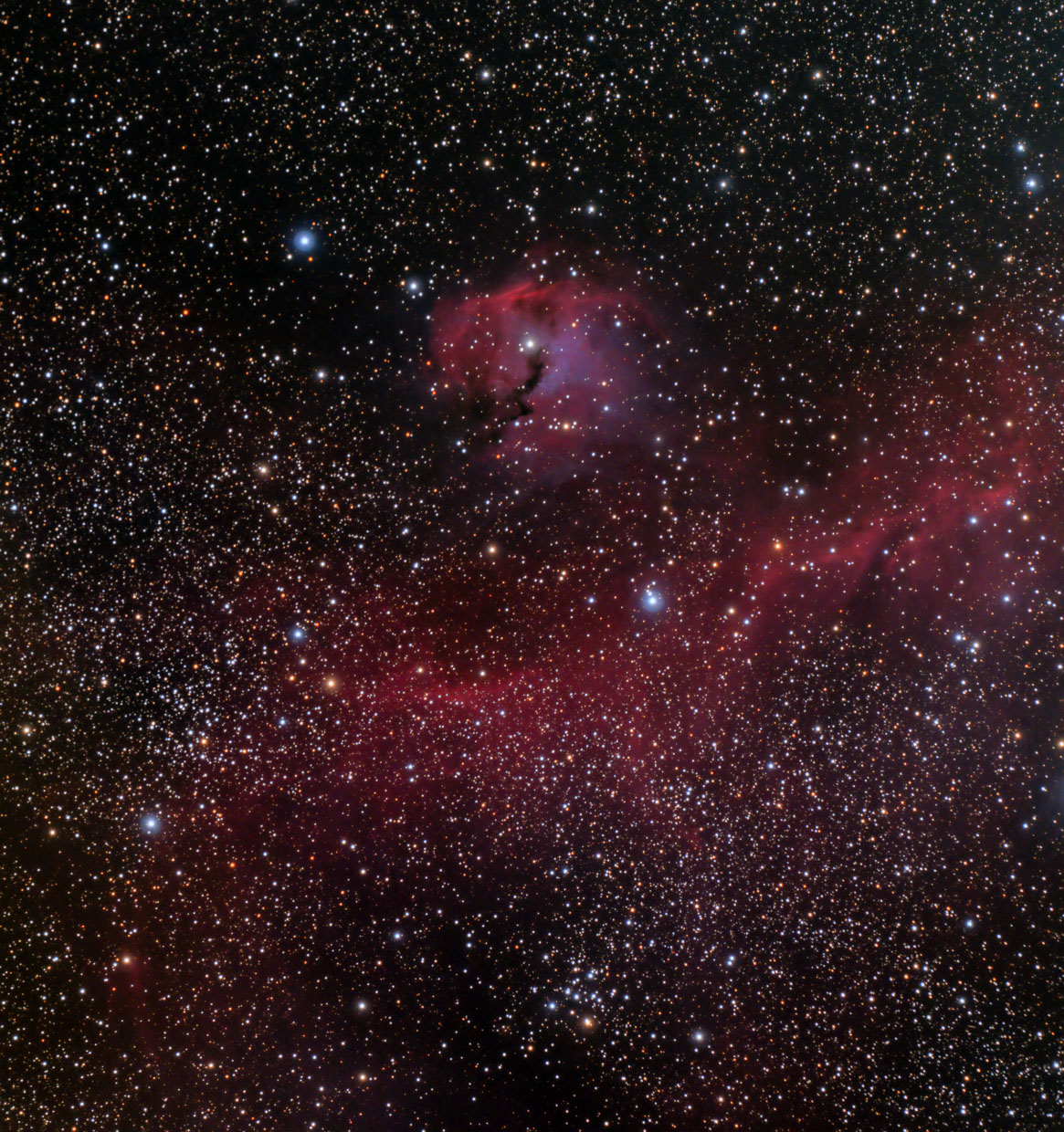Open Cluster Tr 37 mit IC 1396A und Herrschels Granatstern im Cepheus.