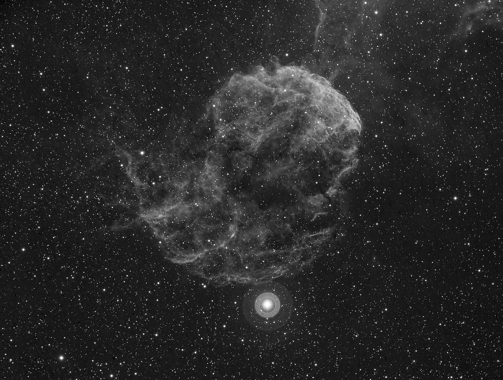 IC 443 Supernovarest in den Zwillingen, der helle Stern ist Propus, Eta Geminorum. Veloce RH200, STF 8300 3,5 nm Ha Baader-Filter 20 x 600s.