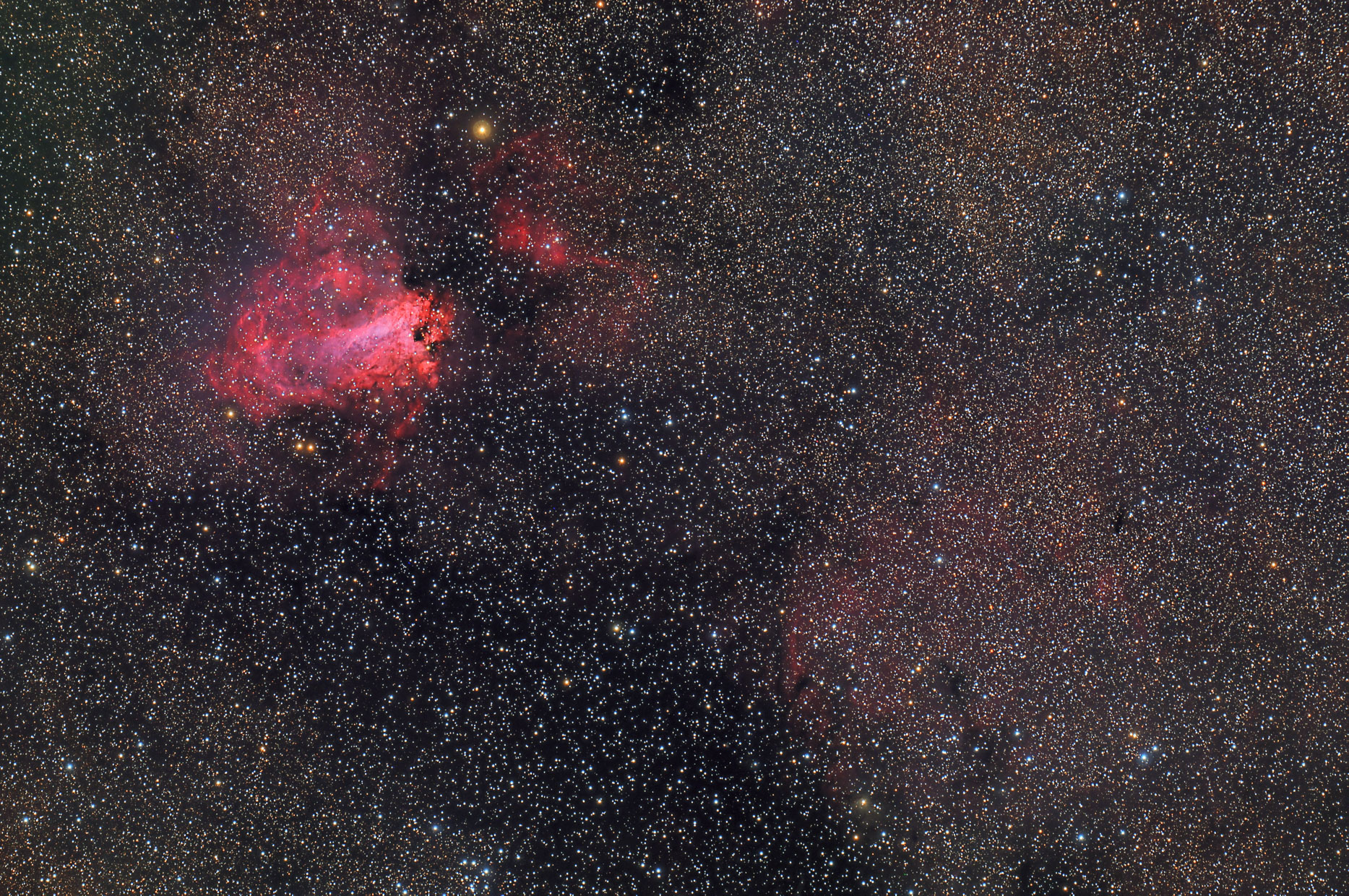 Südwestlich von Messier 17, dem Omega oder Schwan-Nebel, befindet sich ein zarter Emissionsnebel der u.a. die Bezeichnung IC 4701 trägt. Veloce RH200, 30 x 120 s, ASI 071MC, PI + PS