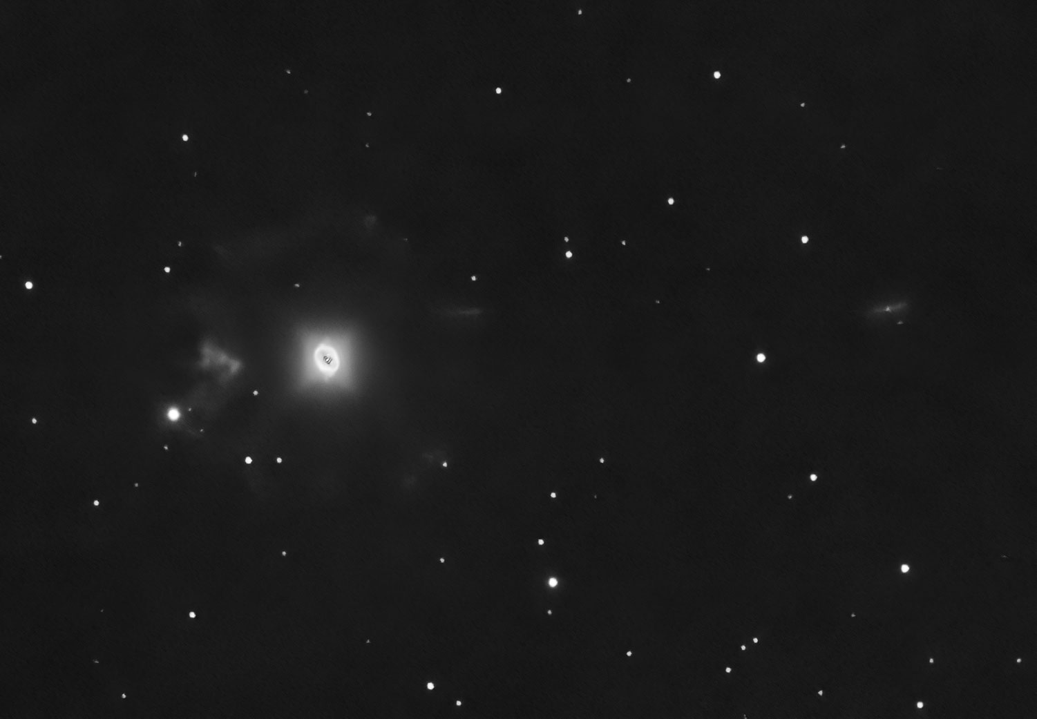 Der Katzenaugennebel ist ein Planetarischer Nebel im Sternbild Draco und hat die komplexeste Struktur unter den bekannten PN. Während der innere Teil nur eine Ausdehnung von 20 arcsec hat, erstreckt sich der äußere über 6 arcmin und ist auf Grund des großen Helligkeitsunterschieds sehr schwer gleichzeit darstellbar. NGC 6543 HDR composit aus 30 x 30 s L, 30 x 60 s O3 und 10 x 600 s O3, Kamera STF 8300M, Teleskop RC 8