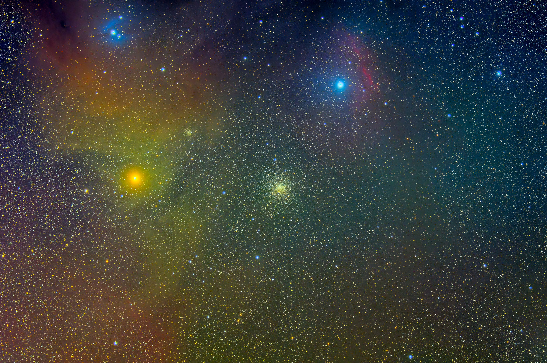 Die Region um Antares mit den südlichen Anteilen der Rho Ophiuchi Molekular Wolke. Neben Antares der Kugelsternhaufen M 4 EDPH 61/4.5, ASI 071 MC, 25 x 2 min., PI + LR