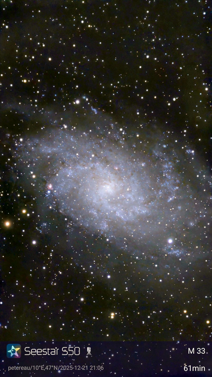 M 33, die Dreiecks Galaxie mit dem Seestar, interner Stack, Bearbeitung mit dem Pixel 6