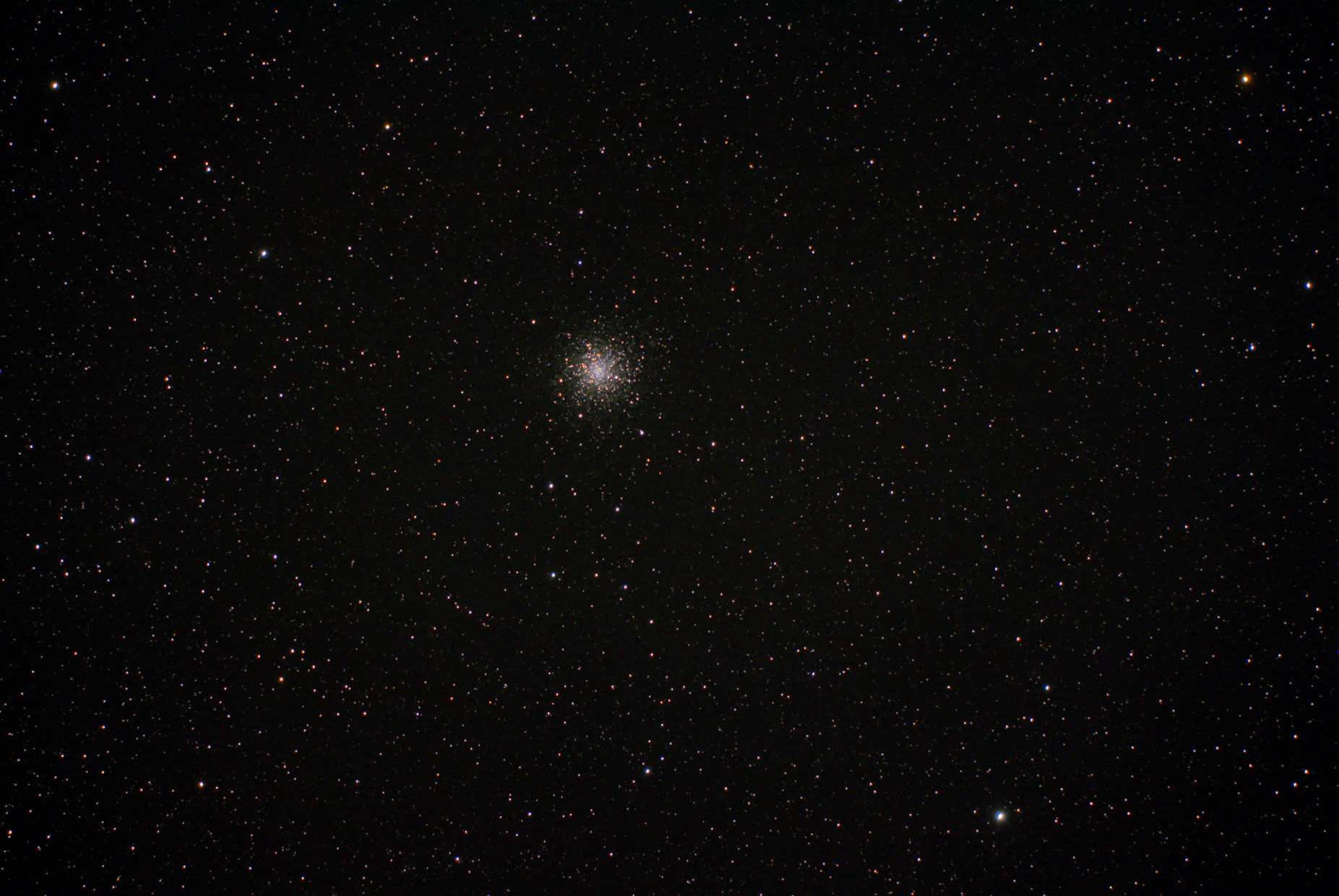 M15 in Pegasus - Der Kugelsternhaufen M15 ist der erste in dem ein planetarischer Nebel (Pease 1) entdeckt wurde. RC8 EOS 1000da, 5x3 min, ISO 800