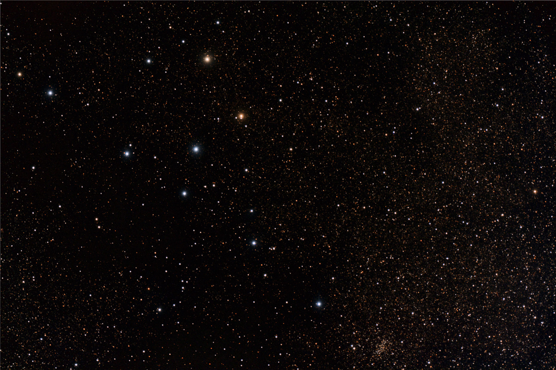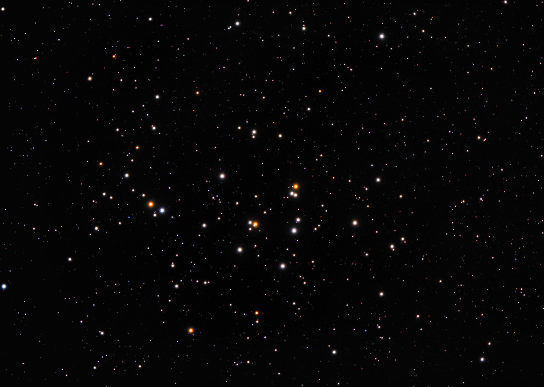 Offener Sternhaufen im Krebs, im Gegensatz zu anderen "open cluster" ist er mit 4 Milliarden Jahren deutlich älter. Veloce RH 200, Canon 6Da CLS-CCD, 15 x 120 s, 1600 ISO, IP, PS + LR CC.