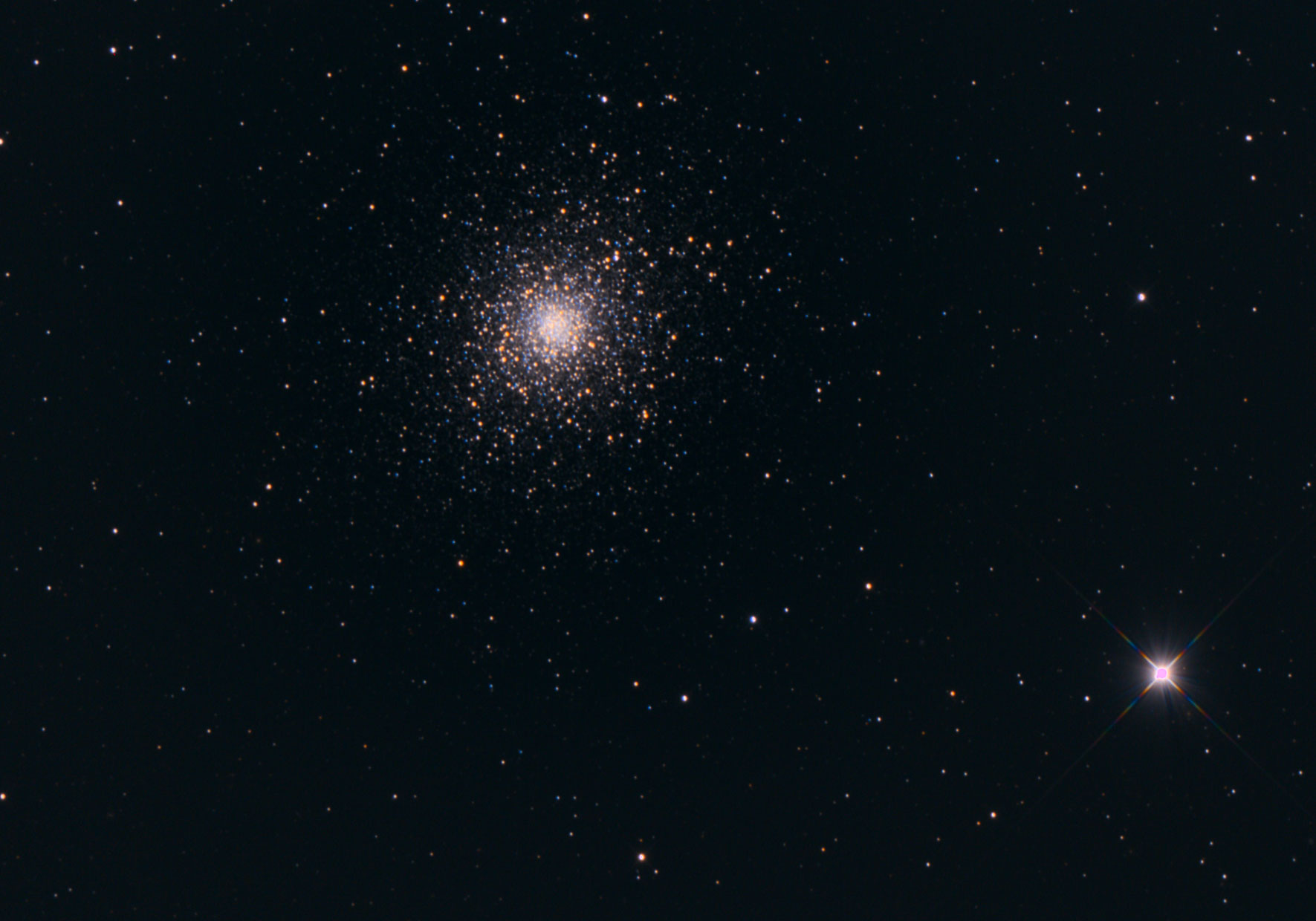 Kugelsternhaufen M13 im Herkules. RC8, ASI071, 20 x 120s, PI, PS + LR CC. Mässige Transparenz.