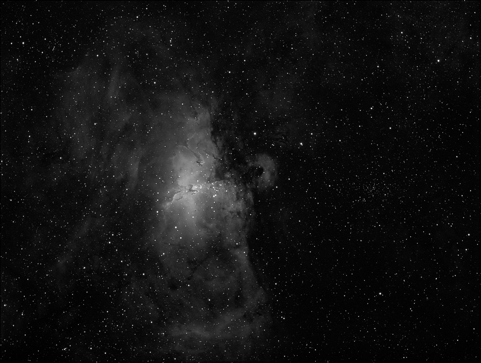 M16 und IC 4703 Weitfeld in Halpha - Der Adlernebel, Halpha Aufnahme vom 30.08.13, Veloce RH200, STF8300, 8 x 6 min. (neubearbeitet 2017)